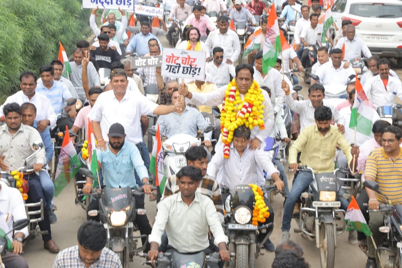 धामनोद जिला ब्यूरो नरेन सीरवी : धार जिले के धामनोद नगर में जिला अध्यक्ष स्वतंत्र जोशी जी के नेतृत्व में वोट_अधिकार_यात्रा निकली।