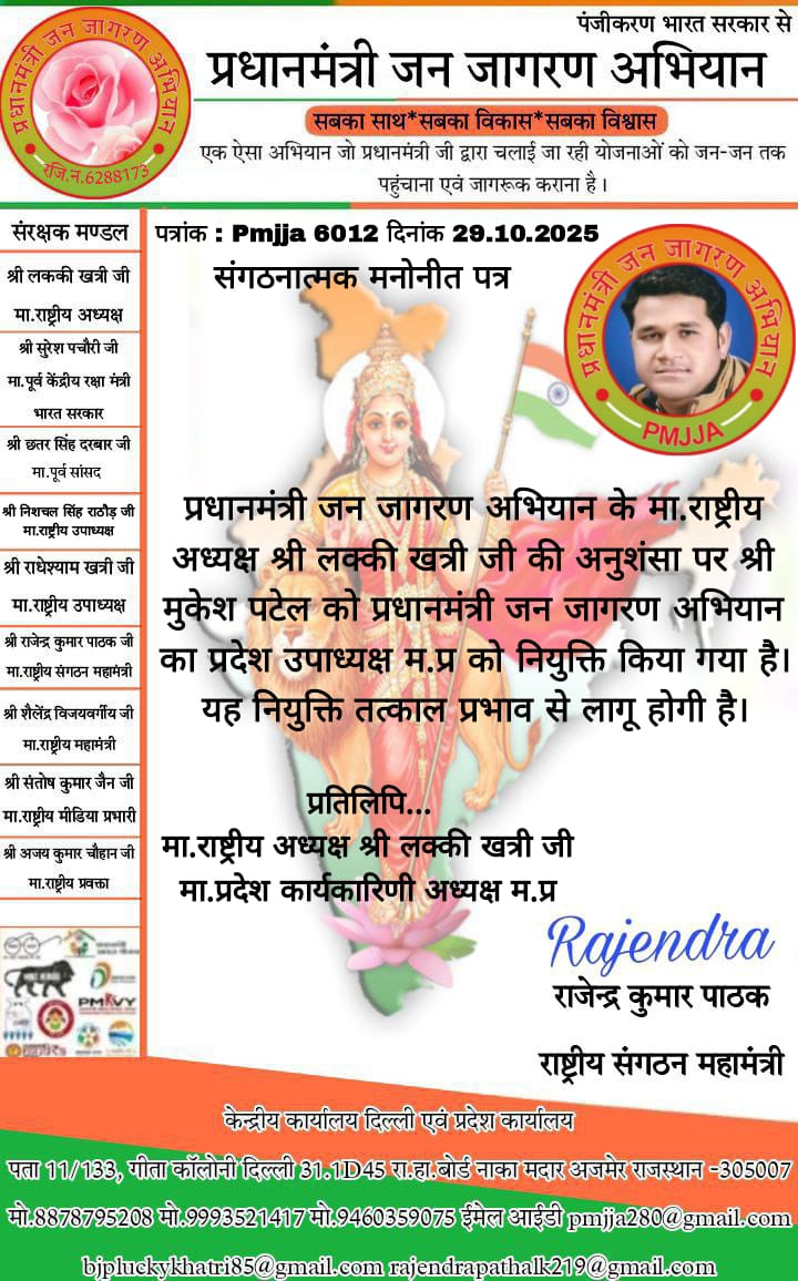 मोहन पाटील संस्थापक संपादक : राष्ट्रीय अध्यक्ष के नेतृत्व में मध्य प्रदेश से प्रदेशउपाध्यक्ष सर्व सहमति से बने श्री मुकेश पटेल धानुक